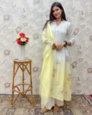 Styling Tip: The white and yellow ombre is the ultimate daytime aesthetic! Pair this fresh outfit with delicate pearl studs, silver hoops, or a minimalist watch. Slide into comfortable white strappy sandals, flats, or traditional embroidered juttis, and finish the look with loose waves for a flawless, breezy vibe.