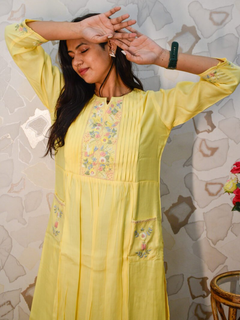 Quick Shop Compare Bright Lemon Yellow Floral Embroidered Pleated Kurta Set with Dupatta ₹2,600.00 In Stock Quick Shop